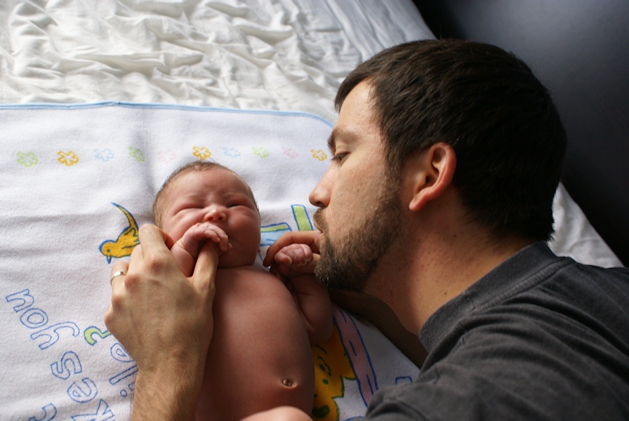 Om nom, eating daddy's thumb.