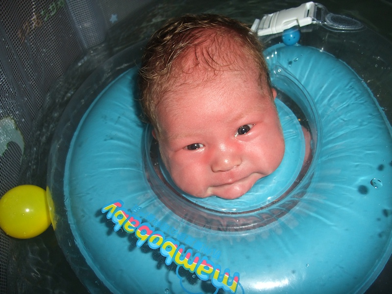 Not so happy baby. This is the first time we're giving him a bath, and I suppose he found it a bit scary. Next time he was in a better mood though, and nowaday he really loves to take a bath.