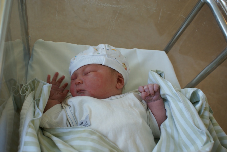 Next morning. Baby is sleeping. Turns out he's a good sleeper, able to almost sleep through the night even this early.