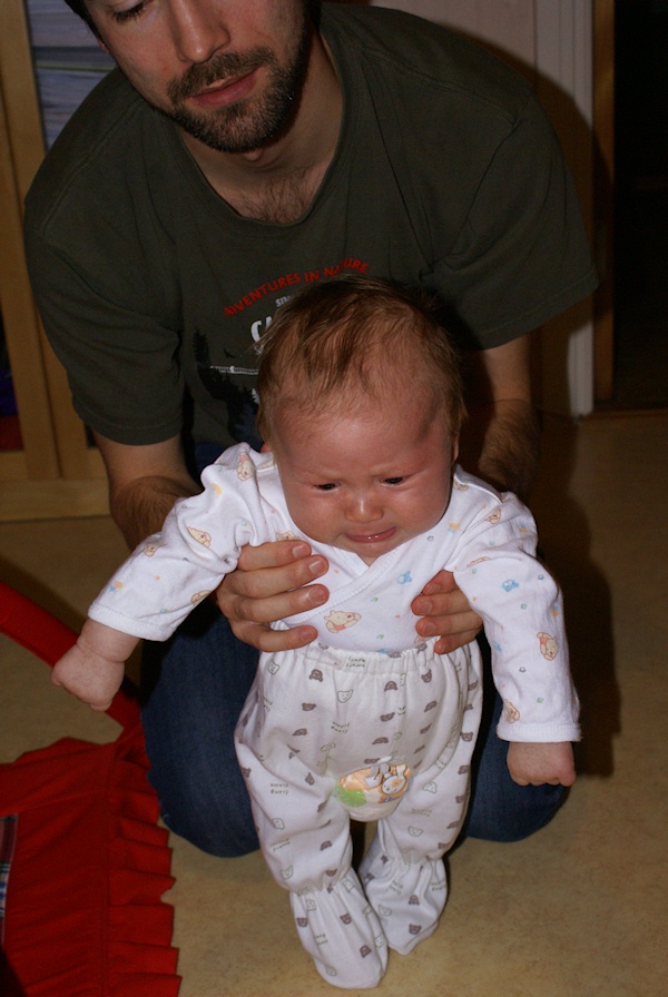 Trying to walk. He's clearly not quite happy with the results.