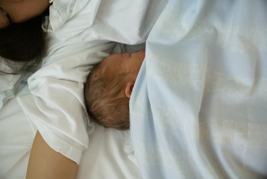 Resting safely with mom.