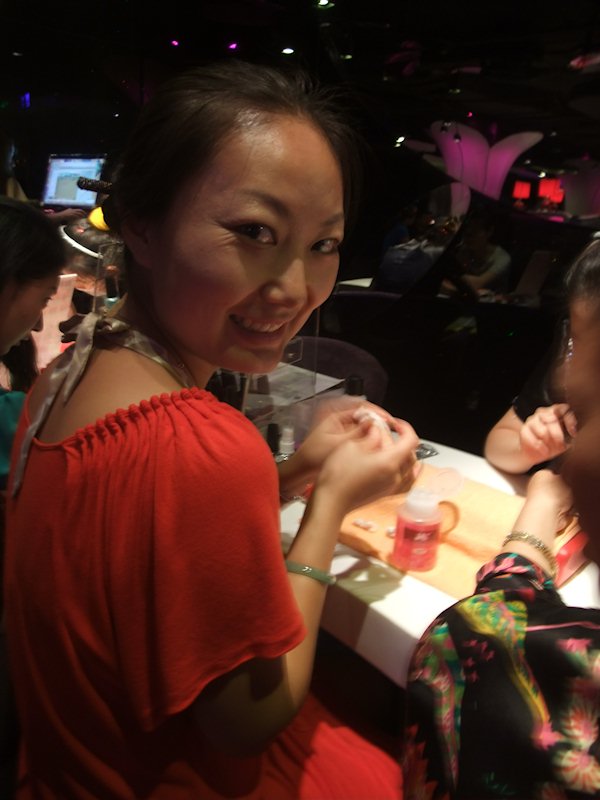 The best way to make sure your customers don't leave the restaurant for some other place due to the waiting time is to offer free nail care for the ladies.