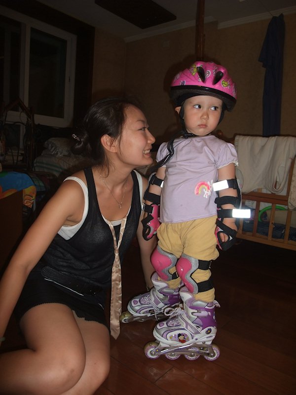 In Beijing with Jenny's friend. This kid is only two years old and can still do rollerblades.