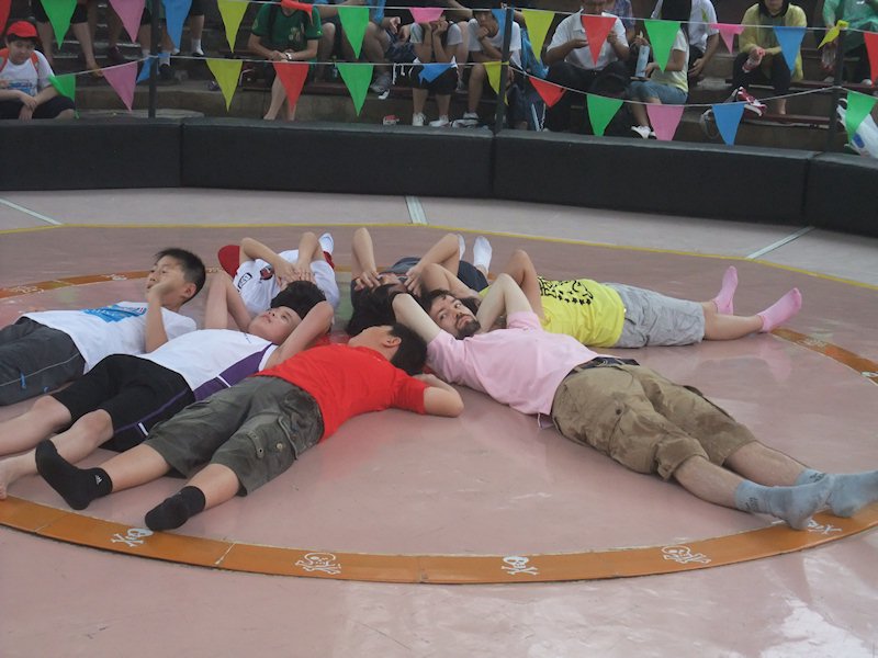 Trying some spinning platform game. You're suppose to stay as long as possible on the rotating platform without sliding off. I think I ended up as number two.
