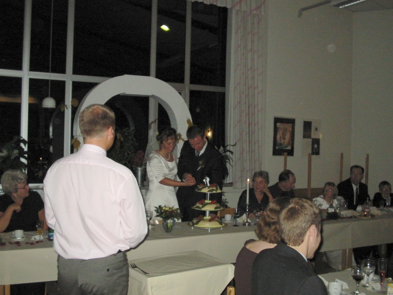 The bridal couple cutting the cake.