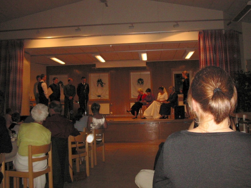| Playing a game with the bridal couple and some other couples, including their parents. |  |
