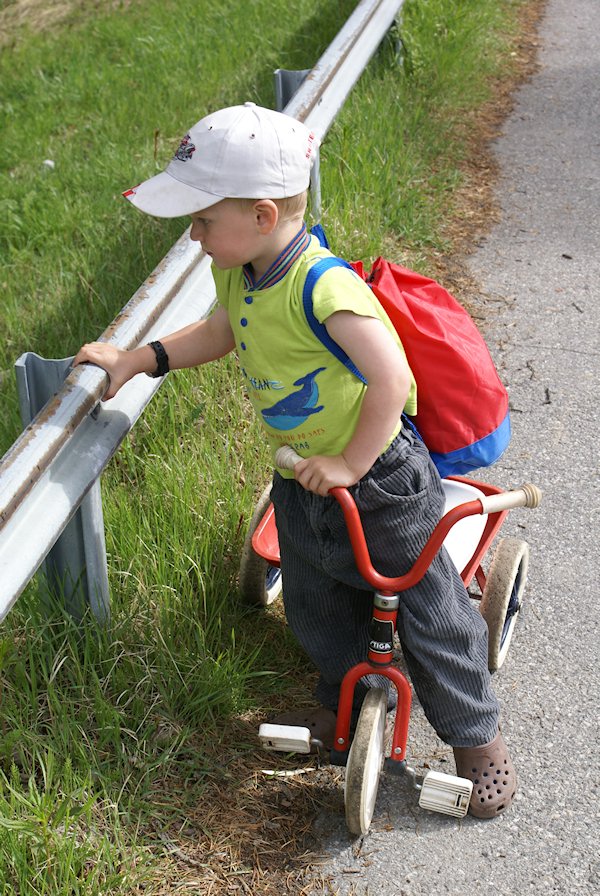 Bike ride with the kids. Lukas looking over the fence.
