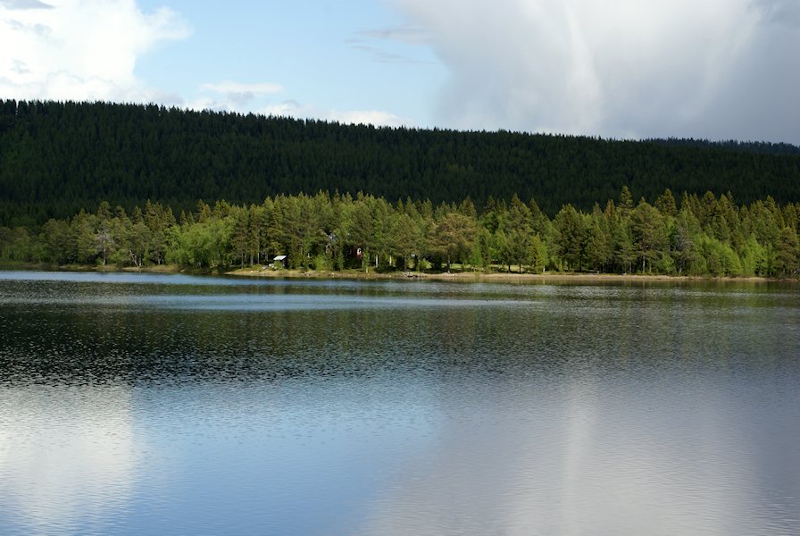 A small opening in the clouds.