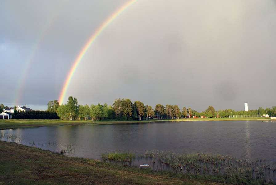 Very beautiful view from here. Unfortunately my lens wasn't wide enough to capture how the rainbow circled the whole lake. The second ring is clearly visible in this picture.