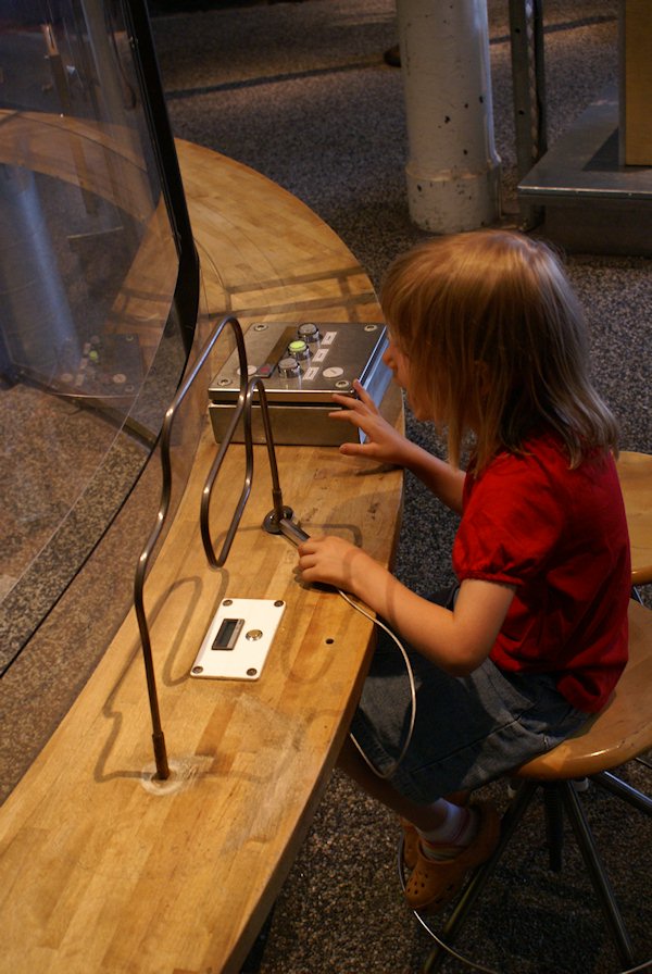 Frida trying to beat the robot at getting the loop to the other side without touching the wire.