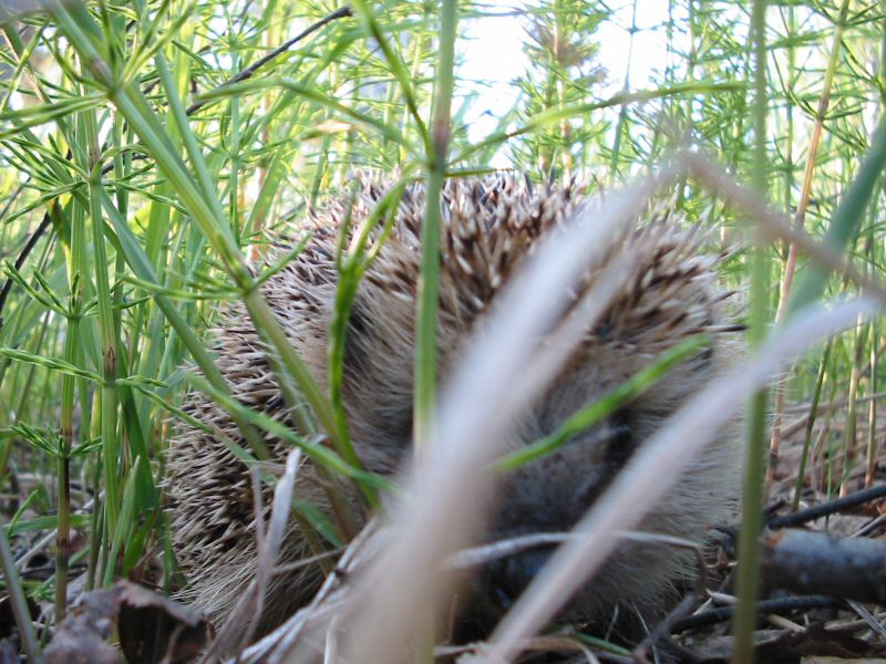 Unlike many other animals hedgehogs don't run away when you get close, they rather try to hide behind their defense of spines. Good for closeup photos.