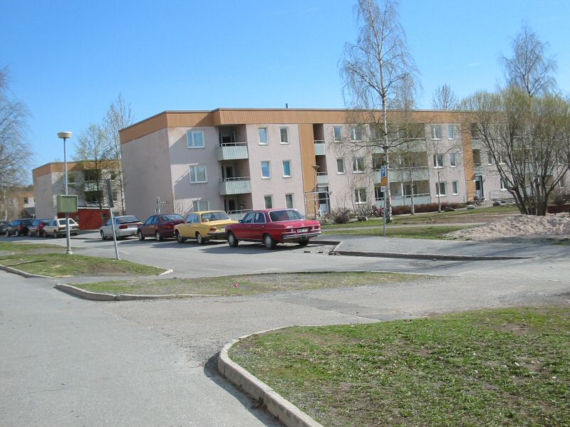 This is where I lived the first year in Luleå, in the area of Tuna. I lived on the ground floor behind the yellow car.