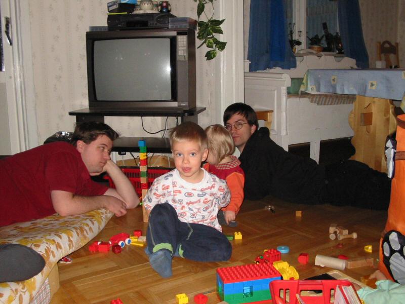 My brother and I playing with the kids.