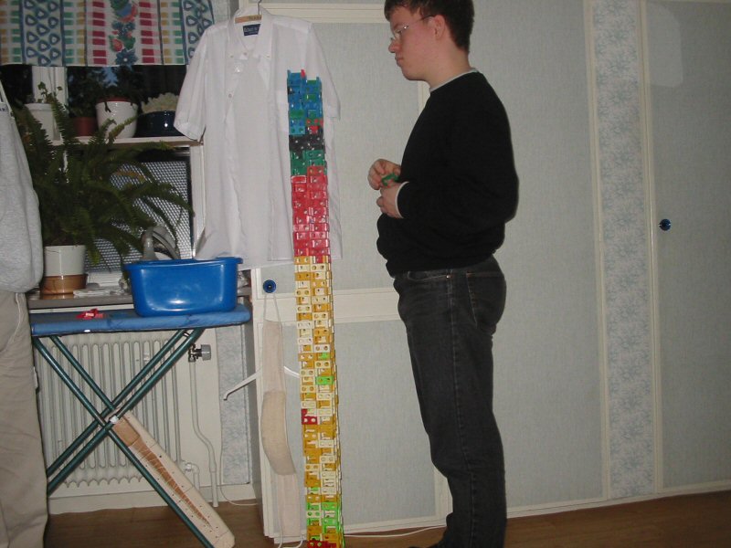 Josef building a domino tower.