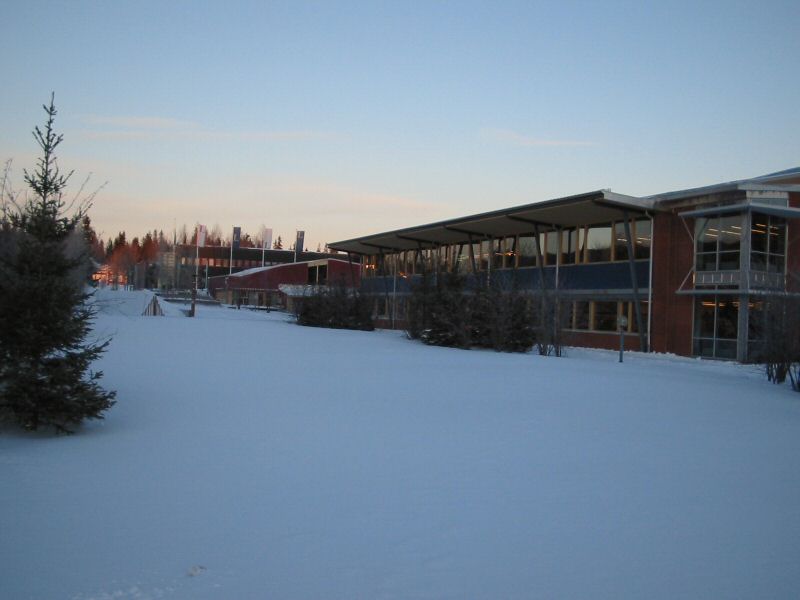 The university area, with the university library to the right.
