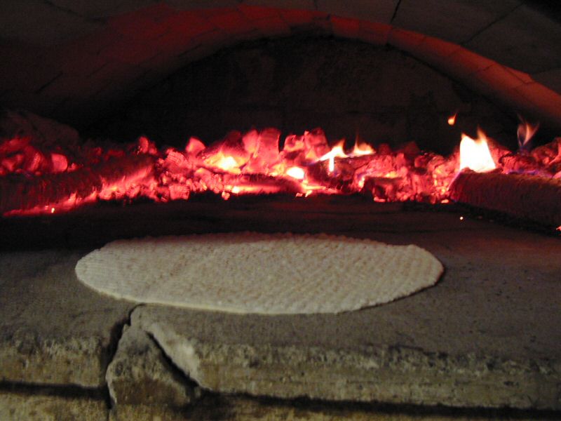 Heating the bread in the oven.