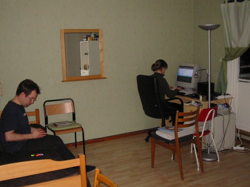 At my brother Joel's place. My brother David sitting on the bed and my sister Petra hacking by the computer.