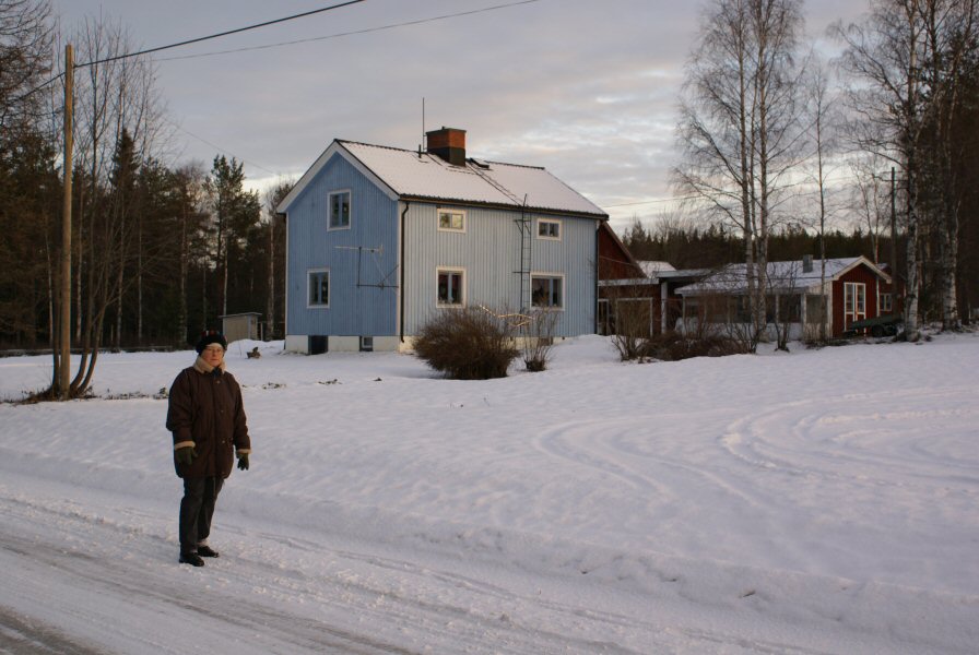 My mom in front of the house.