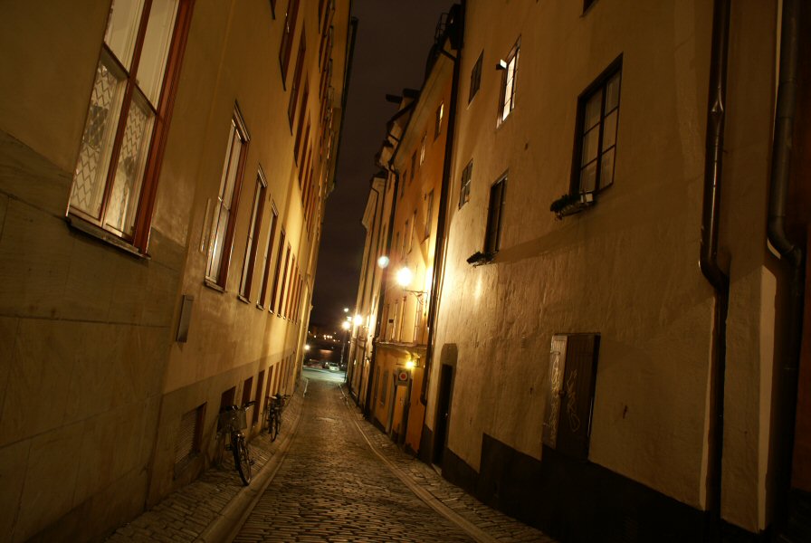 One of the many narrow alleys in the "old town", an old and very picturesque part of the central Stockholm.