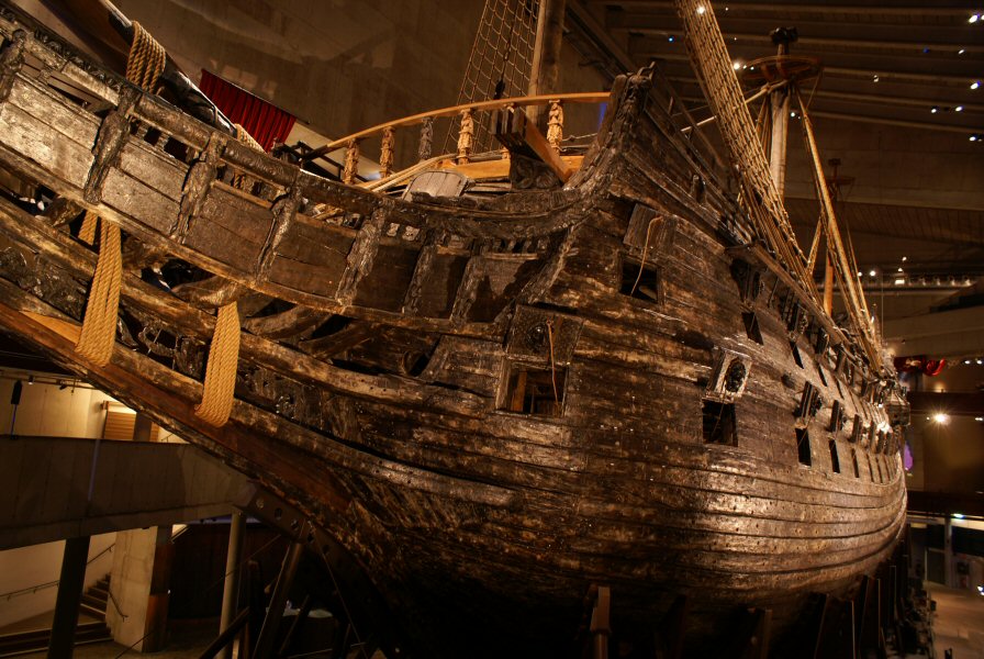 | At the Vasa museum. Vasa was a military ship the king ordered back in 1625 and it was built to show off Sweden's military power. Ironically, and embarrasing for the king, the ship sank on its maiden trip in 1628 after traveling less than a mile. Basically it was poorly engineered and took in water through the cannon holes as it leaned over from just a light breeze. The ship was rediscovered in 1956 and pulled out of the water and has been conserved and is now on display in the Vasa museum in Stockholm. |  |