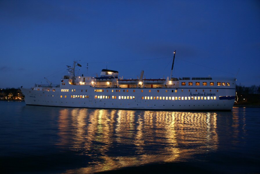On my way back. Here I'm on the Djurgården ferry. The cruise ship passing by is returning from Åland.