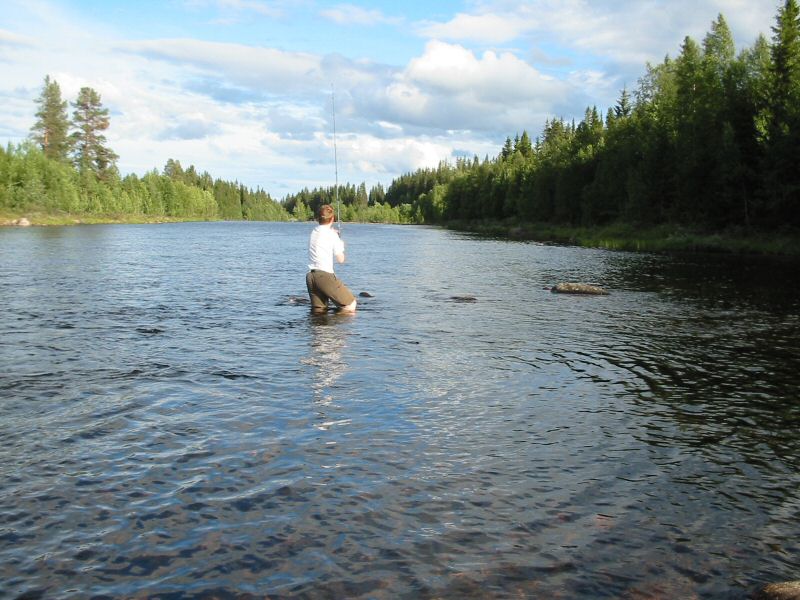 | Josef having a little problem. The lure got stuck in some stones a bit out in the water. Wading required  |  |