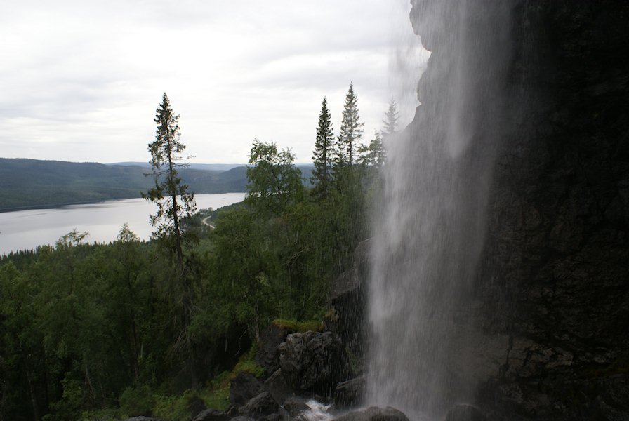 Brudslöjan (eng: "bridal veil"), a small but fairly high water fall near Sorsele.