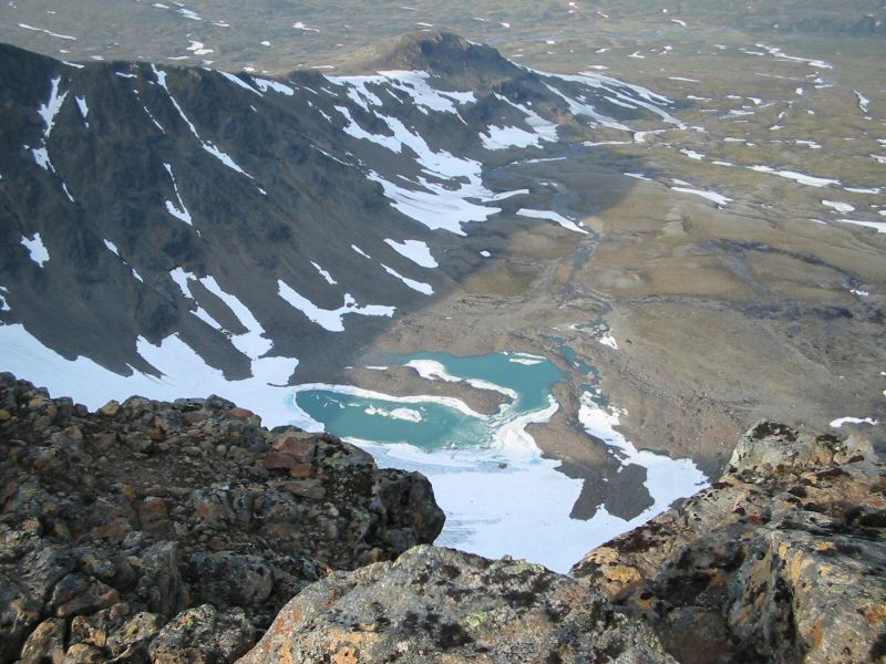 At the top. Here we have 600m free fall down into the glacier and its lake. You don't want to walk too close ...