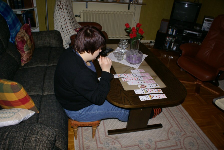 Nadja playing Solitaire.