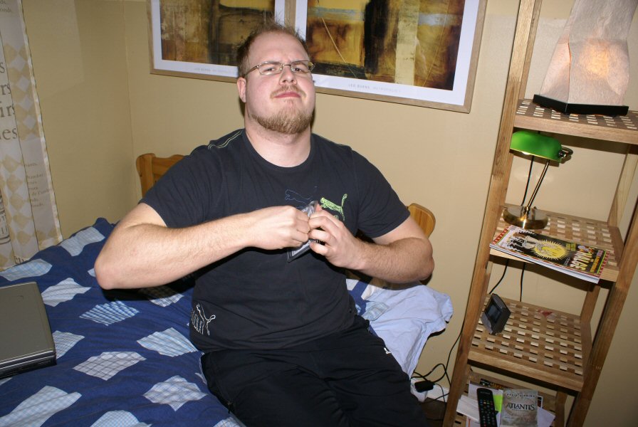Richard battling the bulletproof packaging of an USB drive.