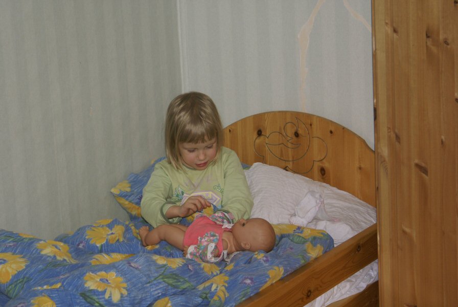 Frida taking care of her doll.