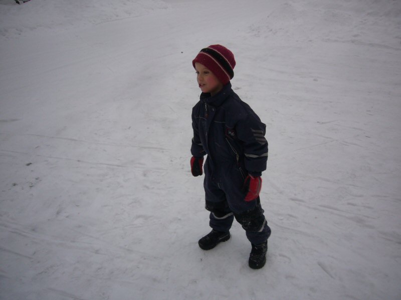 | Johannes in the snow. Thankfully there were plenty up here in the north when we had nothing in Stockholm. |  |