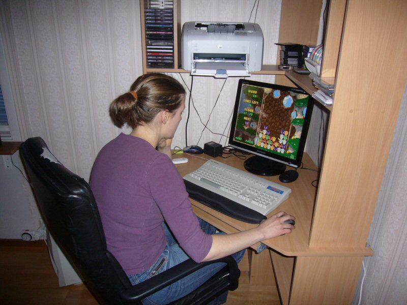Petra playing Hamster blocks.