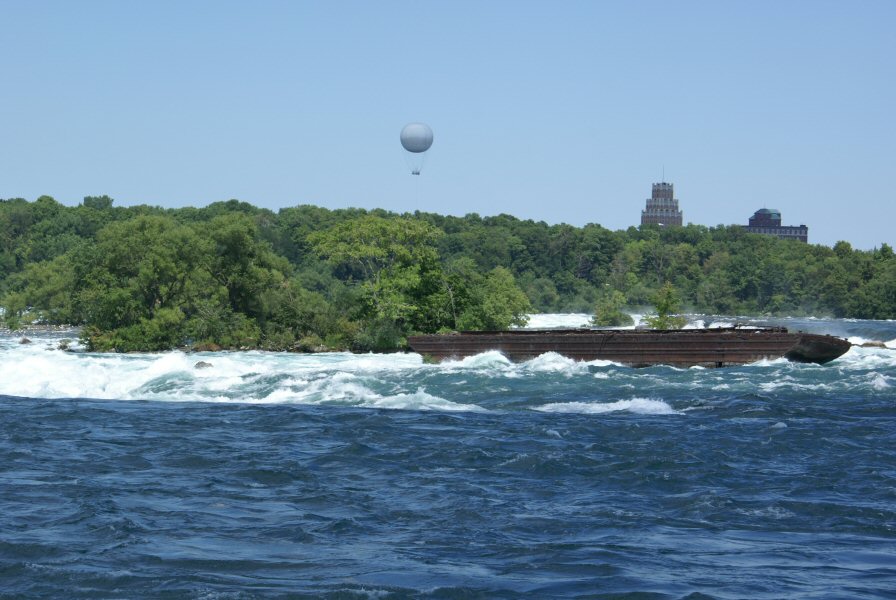 A closer view of the stranded scow.