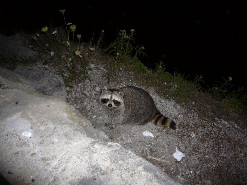 A bunch of raccoons showed up just outside the fence toward the river. Here's one of them. Seems like an odd place for an animal to stay, even though I suppose tourists leave plenty of food around. But they have about half a meter between the fence and a 50m high perpendicular precipice.