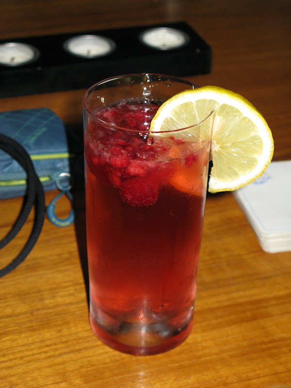 A homemade drink with strawberry and raspberry.