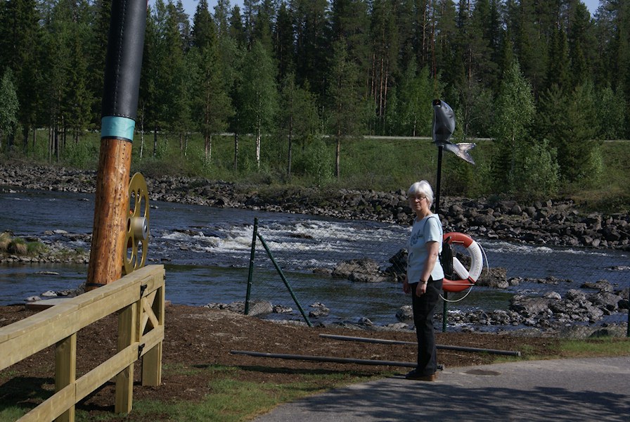 Mom checking out the fishing rod.
