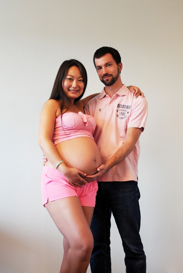 Holding the belly so it doesn't fall off.