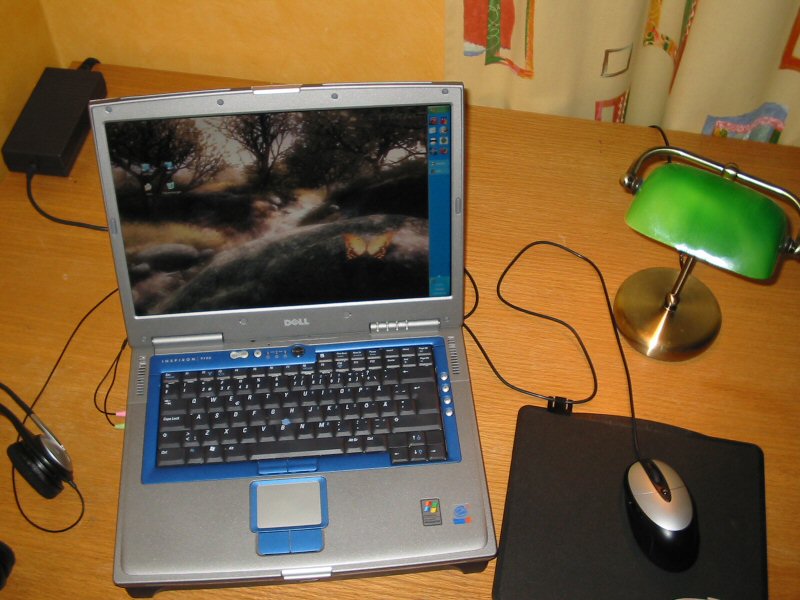 My roommate got tired of the noise of his desktop computer. So he sold it and bought a nice Dell Inspiron 9100 laptop.