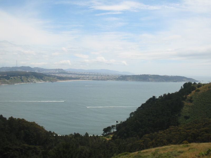 Up on the hills next to the bridge.