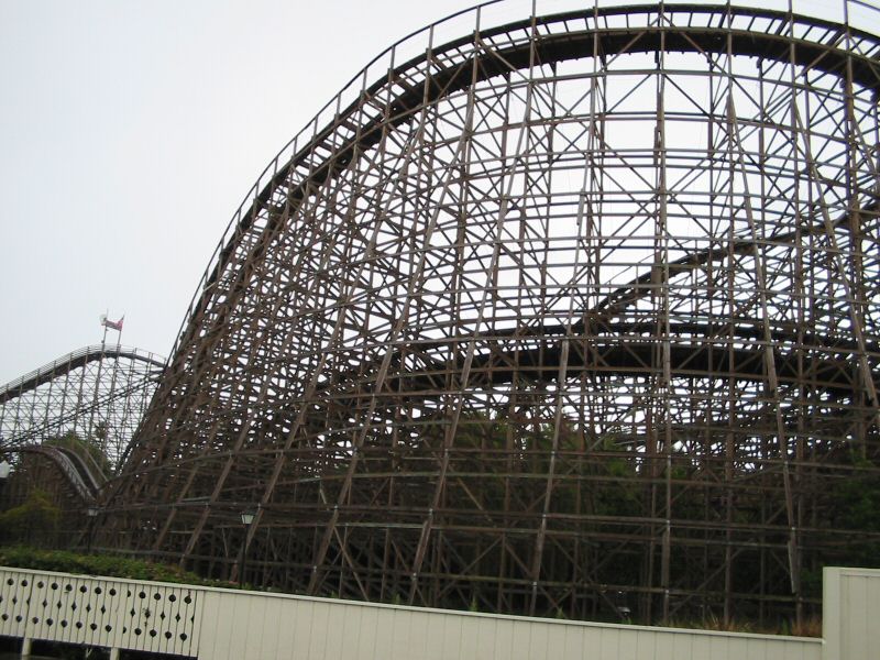 | Back at the Great America amusement park. The first few weeks of the season you could upgrade your general admittance pass to a season pass for free, which I obviously did, so I got back there the next weekend as well. Here's one of those nasty wooden rollercoaster. I didn't try it. Personally I don't find massive shaking adds much more than pain in the ass (literally) to the experience. |  |