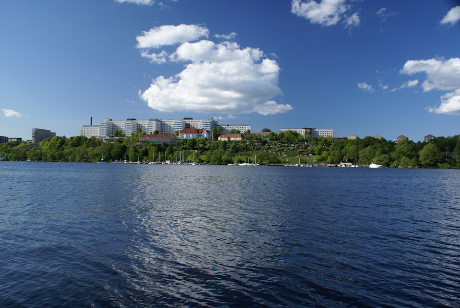 Looking across Årstaviken. The large building is Södersjukhuset, one of the largest hospitals in Sweden.