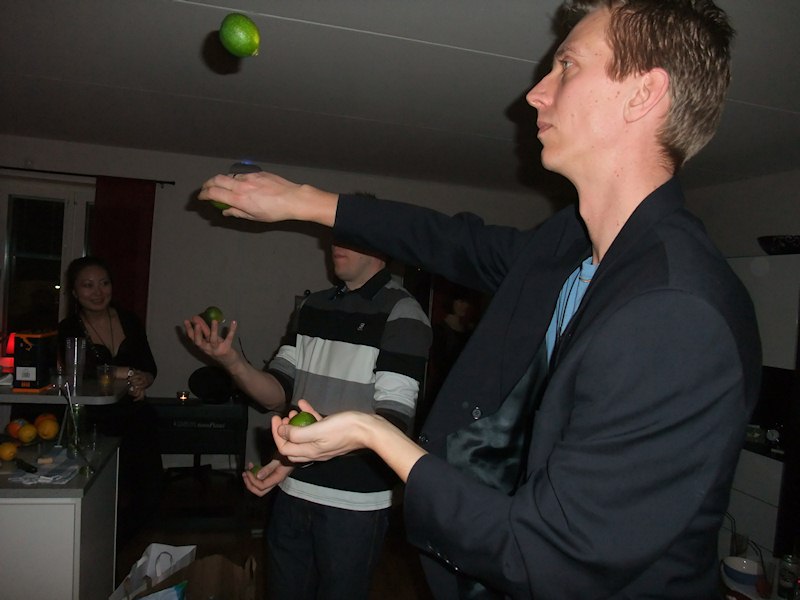 | I connected with my old friend Jonas Birmé from highschool on Facebook. Last time I met him was at the class reunion 7 years ago. Here I'm at a party in his home. I don't know the dudes juggling here though. |  |