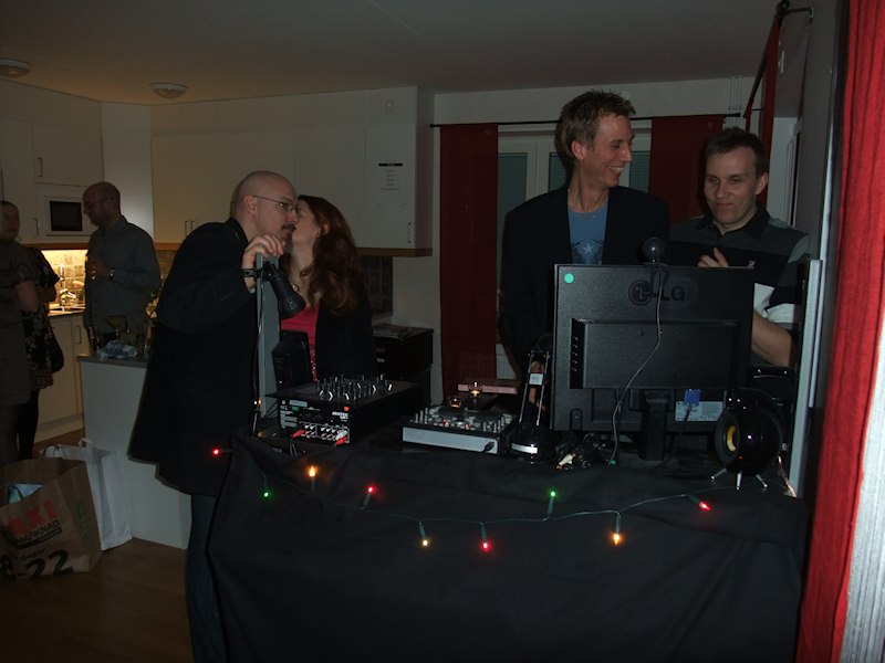 Jonas friends' playing with his DJ equipment.