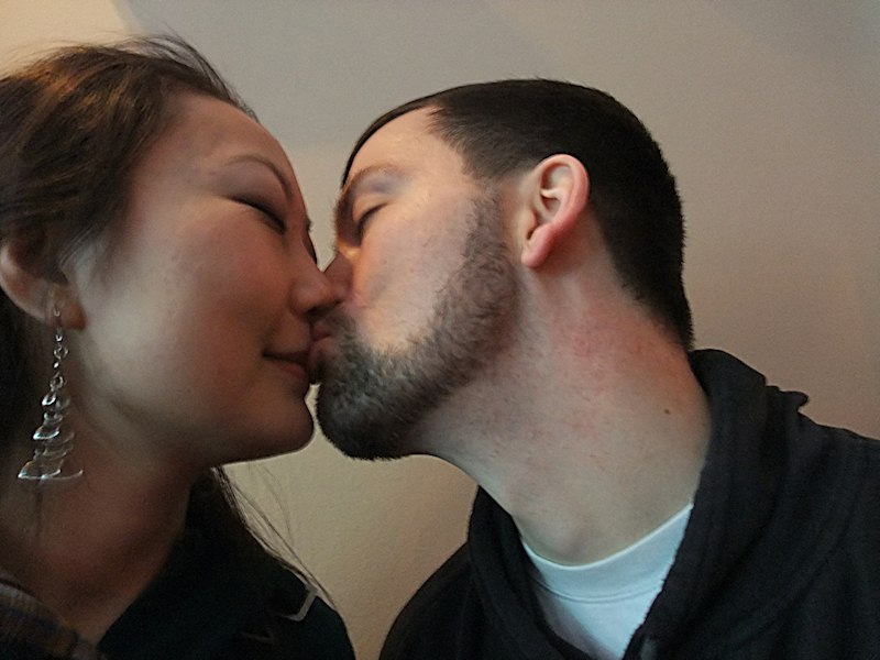 Stealing a kiss.