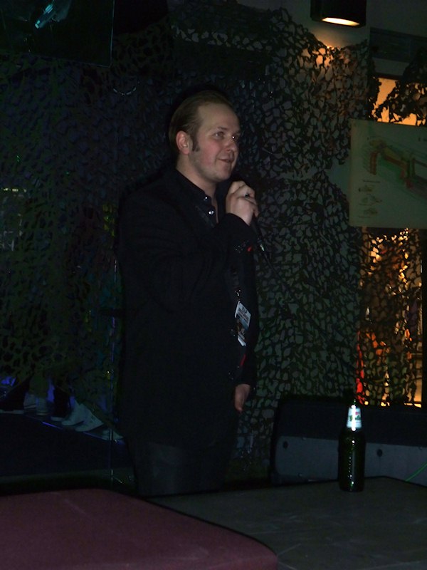 Christofer Sundberg speaking to the crowd at the Just Cause 2 release party.