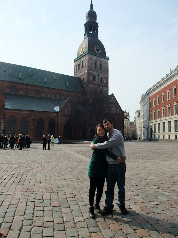 Jenny and I in front of St. Mary's Cathedral in Riga.