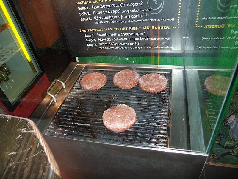 At this restaurant you could watch your particular burger getting fried if you wanted. The entertainment value of this arrangement dropped pretty soon though.