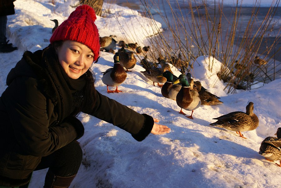 Jenny playing with the ducks.