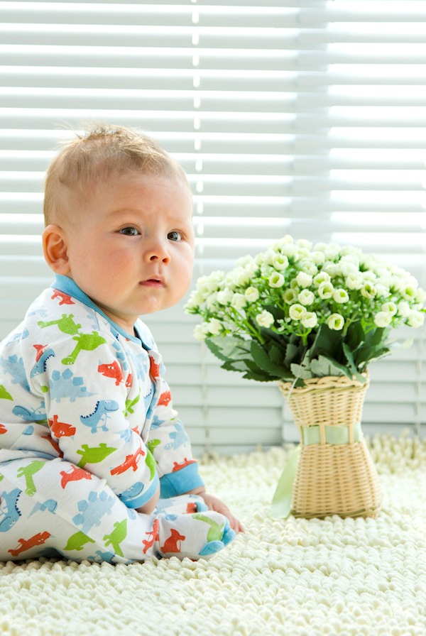 By a flower bouquet.